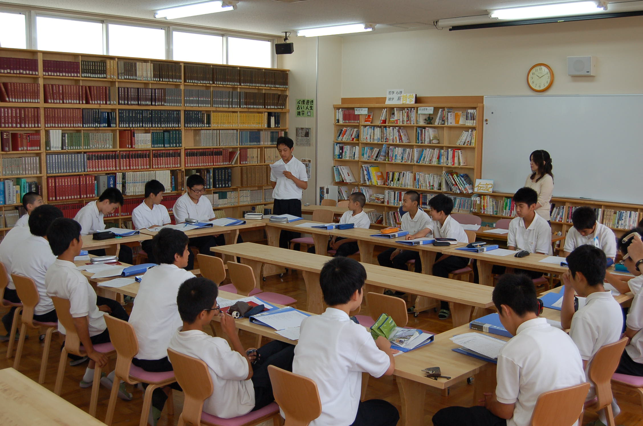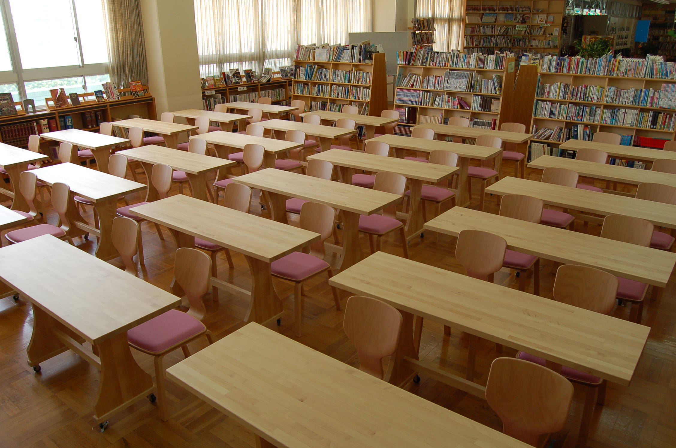 今年度4月からスタートした中学校の「読書科」の授業に対応して、これまでのテーブルと椅子を可動式のものに入れ替えました。「読書科」の授業はすべて図書館で行います。これまでは、大型の閲覧用テーブルが入っていましたが、授業で使用する際に使いにくい面があり、可動式への移行を計画してきました。