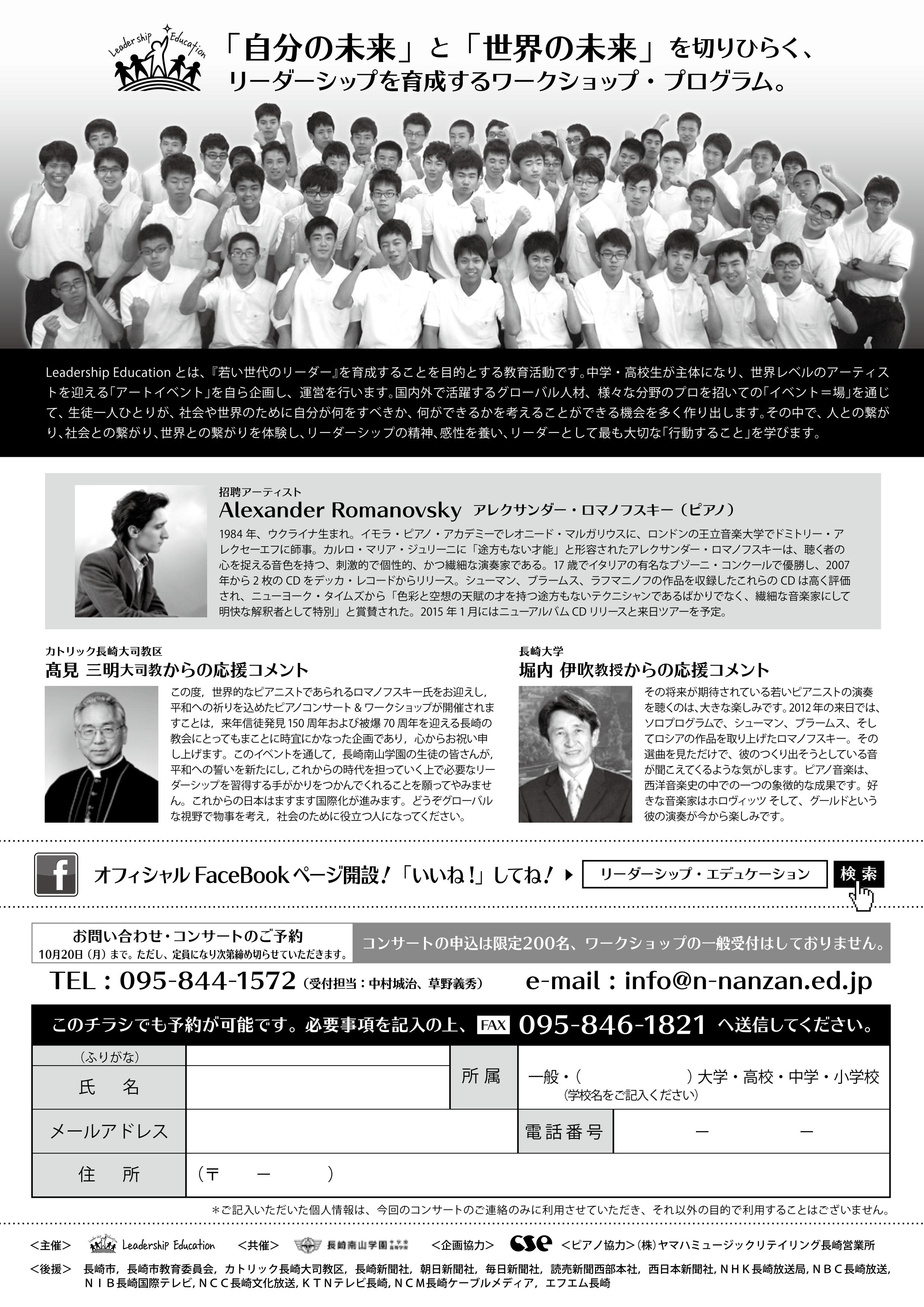2014年11月1日(土)、浦上教会でウクライナ出身(イタリア在住)の世界的ピアニスト、アレクサンダーロマノフスキー氏のピアノコンサートを開催いたします。【長崎南山リーダーシップ教育企画】