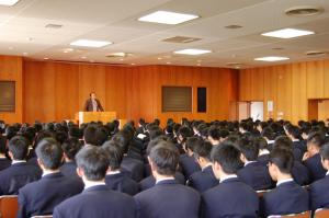 1月19日,20日の2日間にわたって行われる「大学入試センター試験」を受験する高校3年生215名の生徒を対象に5階講堂で激励会が行われました。永山誠校長からは,相田みつをさんの「どう転んでも俺の顔」という言葉を引用し,結果を恐れず「平常心」で臨むようにとの激励がありました。